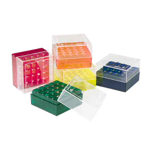 These racks are durable and made of polycarbonate. They are ideal for cryogenic storage and are able to be kept in a temperature range of -196°C to +121°C! These 25 place racks are in a 5x5 format for 1.0 or 1.8 mL tubes with maximum tube dimensions of 12x49mm. They feature drains and vents to prevent pressure buildup. They also come with clear lids to maximize visibility.