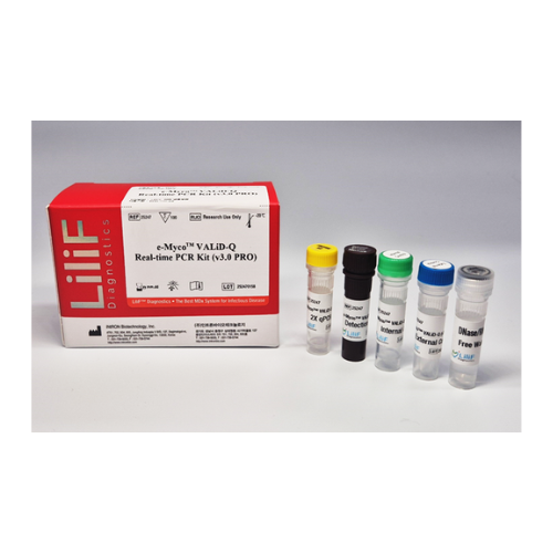 The e-Myco™ VALiD-Q Real-time PCR Kit (v3.0 PRO) provides a speedy, reliable, and guideline-compliant method to detect mycoplasma contamination in cell-based manufacturing processes. The assay offers comprehensive coverage of international pharmacopeia standards (EP, USP, JP, and Korea MFDS), enabling simultaneous detection of compendial reference species within a single integrated panel. Panelized primers and probes, developed through extensive sequence alignment and in-silico validation, ensure high specificity and meet established detection limits without cross-reactivity with non-target microorganisms.