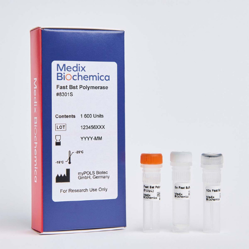 Fast Bst Polymerase is a recombinant DNA polymerase expressed by Geobacillus stearothermophilus. The DNA polymerase displays high strand displacement activity, exhibits 5’ to 3’ polymerase activity, but lacks 5’ to 3’ exonuclease activity. Fast Bst Polymerase is tolerant to inhibitors, enabling rapid and robust isothermal nucleic acid amplification reactions at a constant temperature. The typical reaction temperature is 65°C.