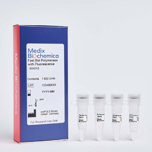 Fast Bst Polymerase is a recombinant DNA polymerase expressed by Geobacillus stearothermophilus. This DNA polymerase displays high strand displacement activity, exhibits 5’ to 3’ polymerase activity, but lacks 5’ to 3’ exonuclease activity. Fast Bst Polymerase is tolerant to inhibitors, enabling rapid and robust isothermal nucleic acid amplification reactions at a constant temperature. The typical reaction temperature is 65°C. Addition of an intercalating dye allows the reaction to be monitored using a real-time PCR instrument.