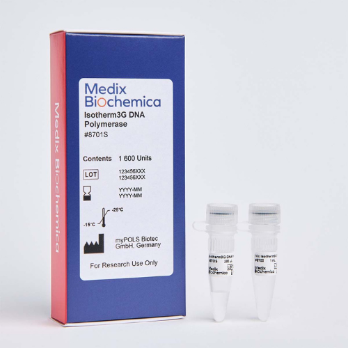 Isotherm3G DNA Polymerase is a unique mesophilic DNA polymerase, which synthesizes DNA from both DNA and RNA templates with a high strand displacement activity activity allowing simplified one-enzyme RT-LAMP reactions. It exhibits 5’ to 3’ polymerase activity but lacks any exonuclease activity. The product components have been optimized and are perfectly suited for loop-mediated isothermal amplification (LAMP) with optimal reaction temperature at 65°C.