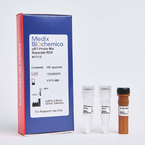 qRT-Probe Mix is a universal one-step probe mix for robust, sensitive, and fast RT-qPCR. The mix uses state-of-the-art technologies with an antibody-regulated hot-start Taq DNA polymerase and reverse transcriptase for efficient cDNA synthesis and real-time. The kit includes a ROX additive and an efficient thermostable reverse transcriptase with an RNase inhibitor (RTase Amp) to prevent degradation of RNA templates by RNases. qRT-Probe Mix is compatible with several probes such as TaqMan® and Scorpions®.